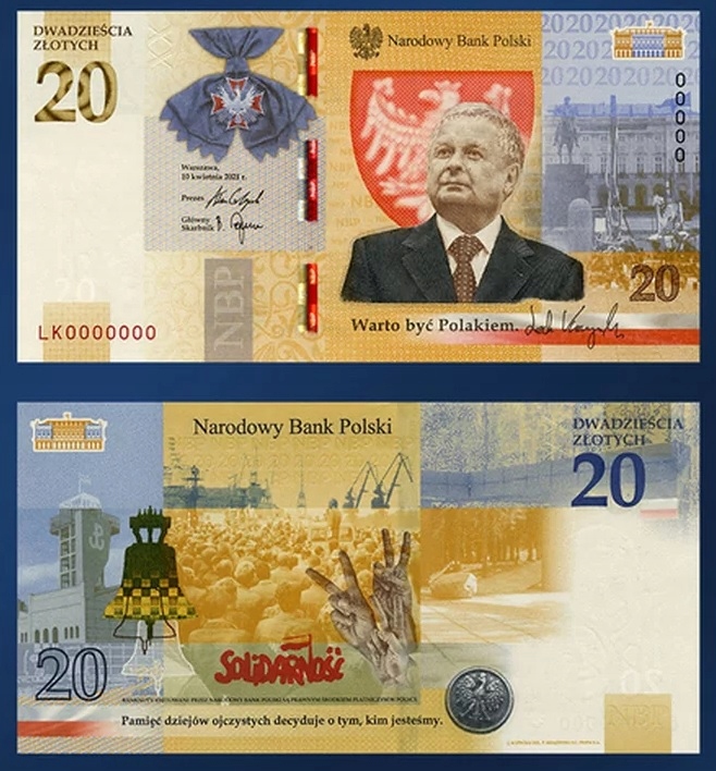 Продам колекційну банкноту 20 PLN 2021 Lech Kaczyński