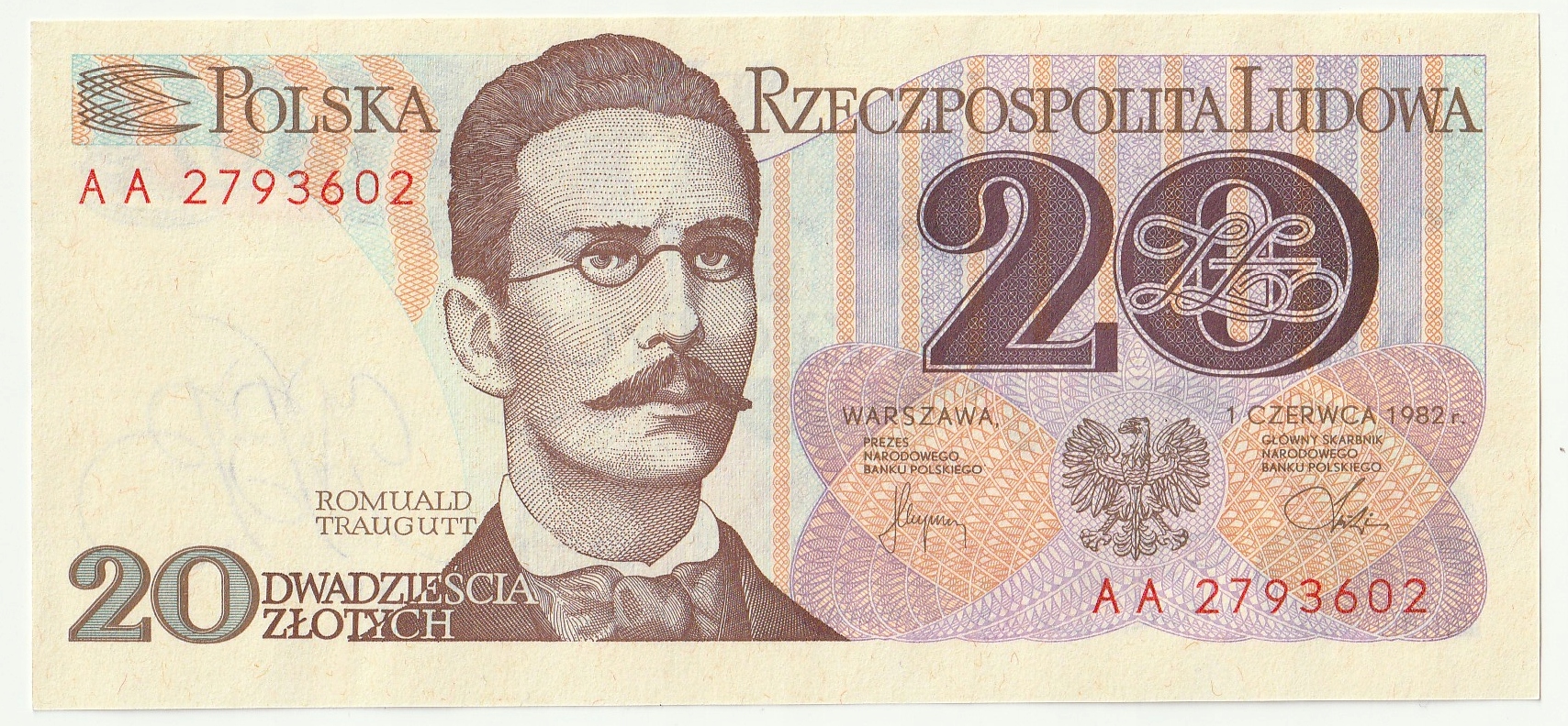 Просматривая «20 Zlotys 1982, серия AA, UNC Stan,», вы можете быть уверены, что данный товар из каталога «[rubrica_name]» будет доставлен из Польши и проверен на целостность. В цене товара, указанной на сайте, учтена доставка из Польши. Внимание!!! Товары для Евросоюза, согласно законодательству стран Евросоюза, могут отличаться упаковкой или наполнением.
