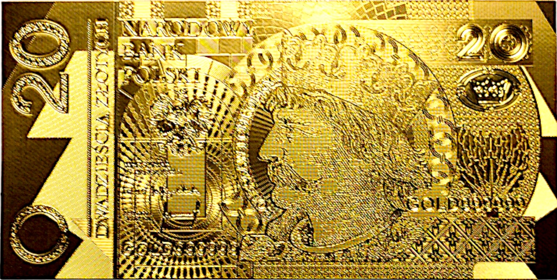 Красива колекційна позолочена банкнота номіналом 20 злотих.