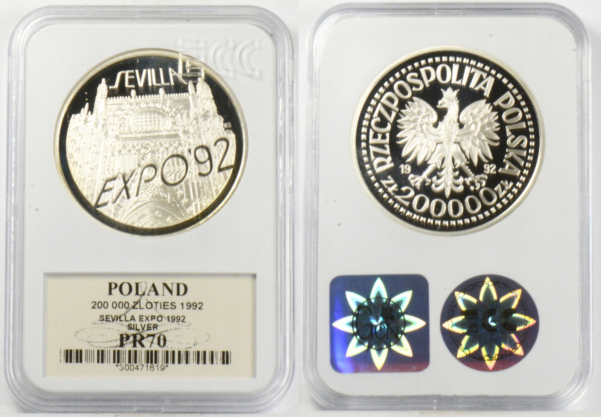 200 000 злотих 1992 EXPO '92 PR70 11/12