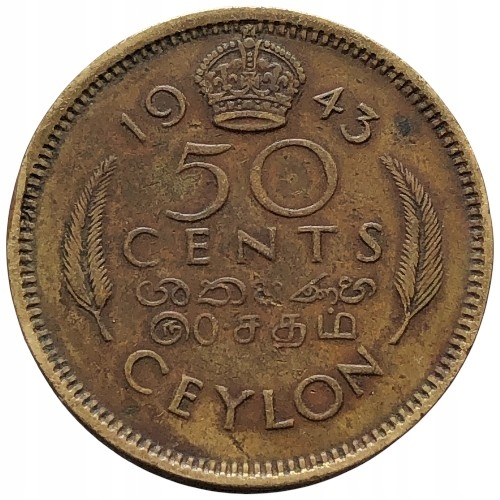 23134. Цейлон, 50 центів, 1943р.