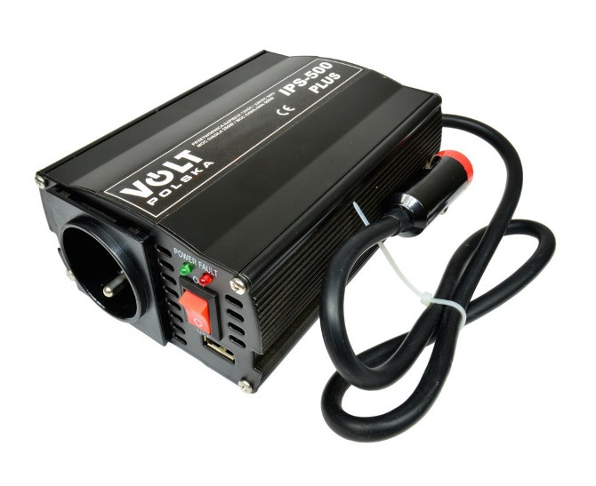 перетворювачі серії IPS виробляють так -зведені модифіковані синусоїд. Це прямокутна чергуюча напруга, ефективне значення якого є таким же, як ефективне значення синусоїдального перебігу, що відбувається в мережі потужності. Використовуючи цей метод генерації напруги, можна значно знизити ціну та збільшити проблему, що виникає у всьому пристрої. Перетворювач, оснащений кабелем, закінчився запальничкою для автомобіля.