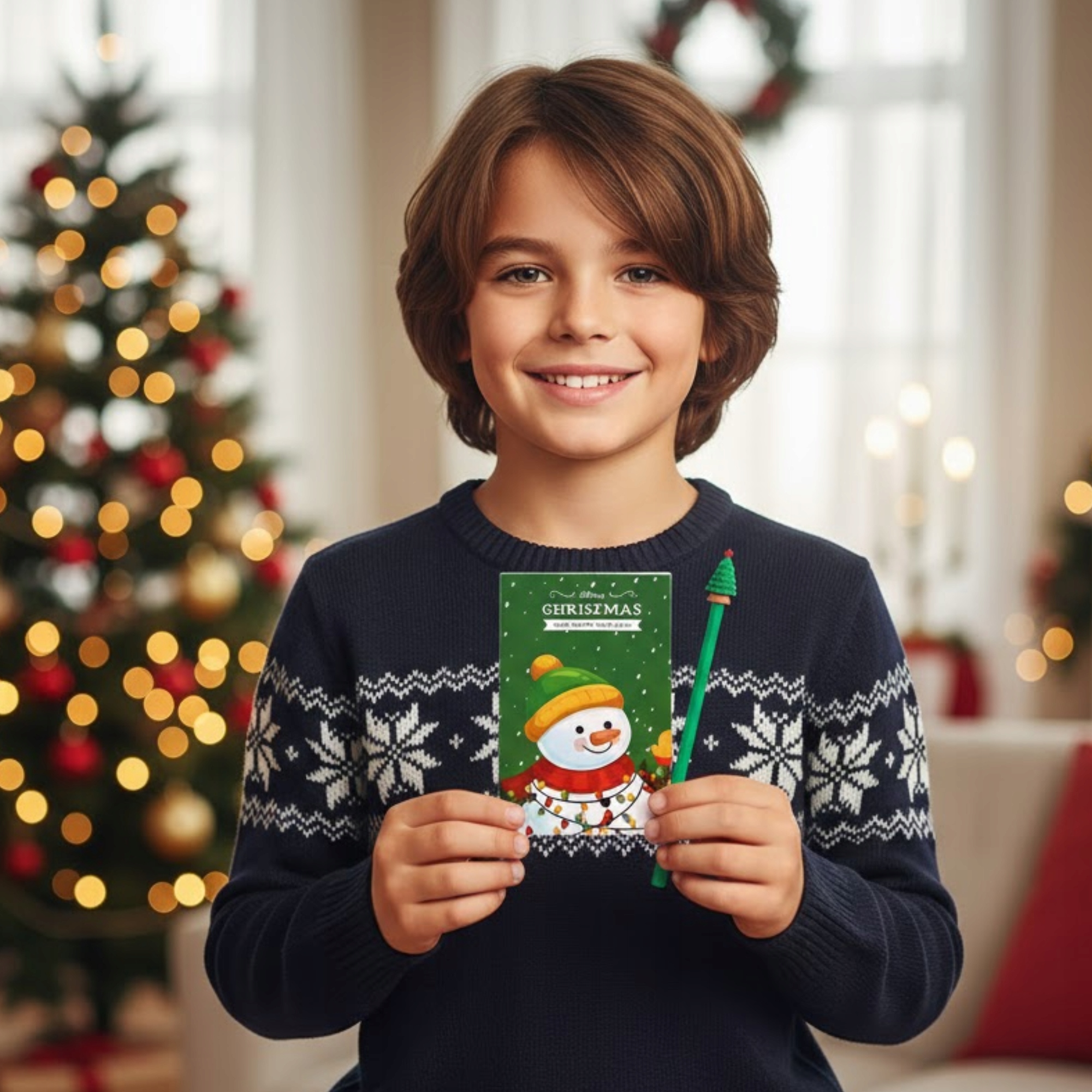 ❤️Великий набір із 24 різдвяних наборів із чарівним мотивом сніговика є ідеальним вибором для шкіл, компаній, дитячих садочків або для створення пакунків Діда Мороза. Кожен набір складається з барвистого блокнота та гелевої ручки з новорічною ялинкою, що створює чарівний подарунок із неповторною атмосферою. Набір поєднує в собі практичність і магію свят, приносячи радість і посмішки скрізь.