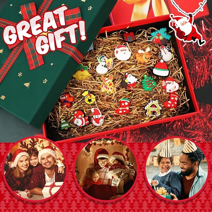 25 різдвяних підвісок із різдвяними мотивами, такими як Санта-Клаус, лось, ялинка, дзвіночок, сніжинка та багато інших!