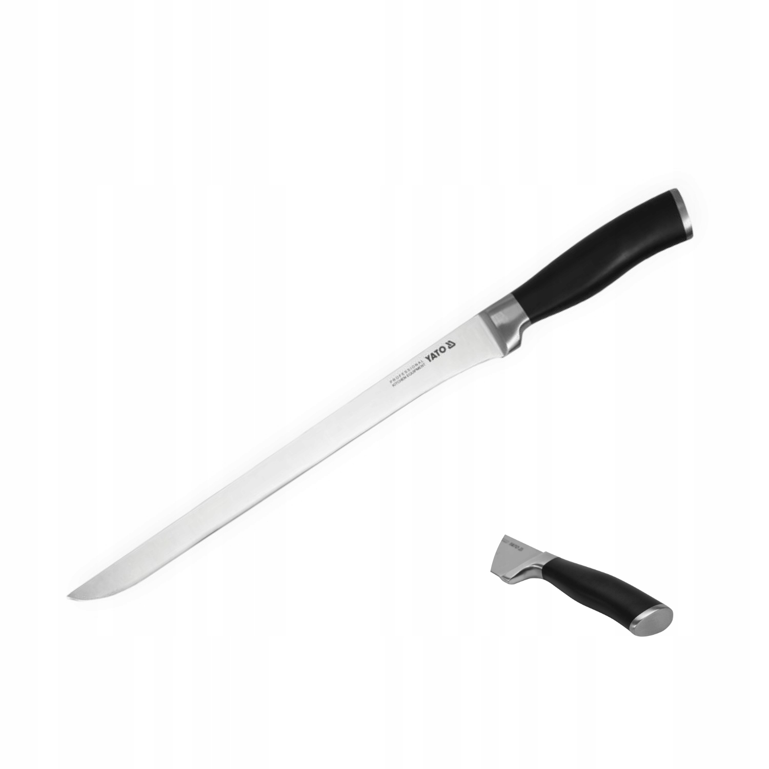 Важливим елементом yato ножа є ручка. Виготовлений з матеріалу non -slip має спеціально профільований, ергономічну форму для забезпечення найбільшого комфорту роботи. Гладка поверхня, без заклеплених з'єднань, запобігає накопиченню залишку , що відповідає вимогам HACCP .