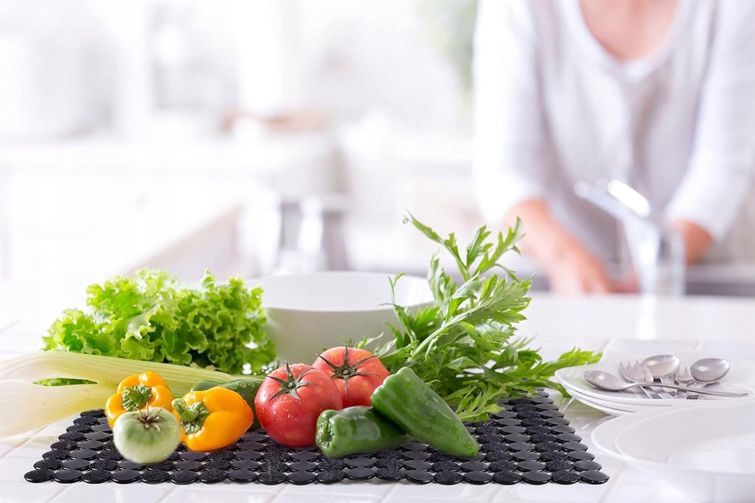 Платній з гнучких ПВХ, стійкий до пошкодження та постійного використання. Він не має неприємного запаху, який відрізняє його від інших захисних килимків. легко вирізати будь -який розмір, щоб ідеально відповідати кухонній раковині та відтоку. , узгоджуючи як мийки з нержавіючої сталі, так і порцеляни. Забезпечує захист суден, скла та поверхні раковини від пошкоджень. що дозволяє швидко злити його та прискорити сушіння килима. або губка. Перед першим використанням рекомендується просочитись у теплій воді, щоб отримати ідеально гладку поверхню. щоб уникнути деформації. Після контакту з соусом або іншим брудом його слід негайно промивати. Розмір: 40 х 30 см