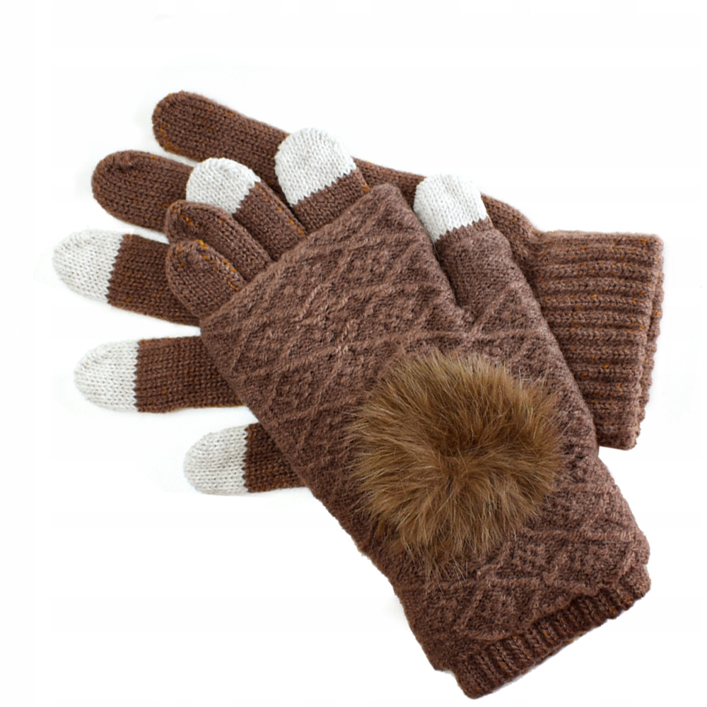 👐 Теплі жіночі рукавички з зимами з модним помпоном. поради індексних пальців і великий палець, покритий матеріалом, що дозволяє працювати з сенсорними екранами.