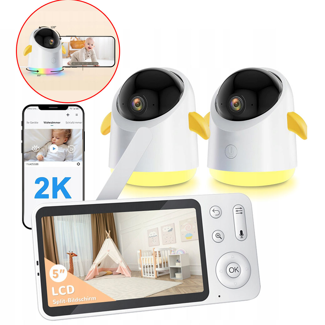 2K 3MP ЕЛЕКТРОННА НЯНЯ З 2 КАМЕРАМИ WIFI LCD 5 ДЮЙМОВ ОБРАТНИЙ НІЧНИЙ ЗУМ