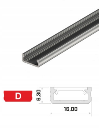 Профіль D – поверхневий профіль, призначений для монтажу світлодіодних стрічок у жорсткі доступні місця. Завдяки своїм розмірам він є основою для отримання максимальної кількості світла при мінімальному розмірі профілю. Ідеально підходить для освітлення кухонних стільниць, завдяки своїм розмірам практично непомітний під навісними шафами.