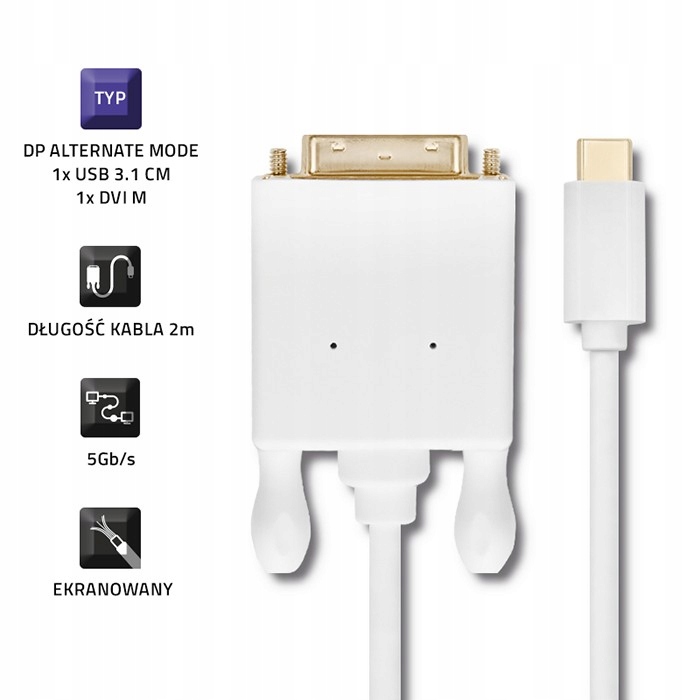 2M USB-кабель адаптер USB-C тип C / DVI 4k Qoltec