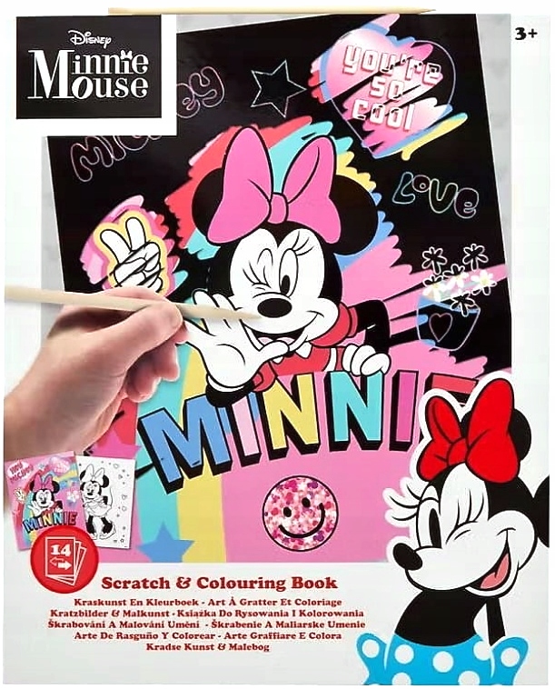 Чудовий творчий набір для дряпання та розфарбовування з Мінні Маус. У цьому чудовому альбомі для малюнків ви знайдете 14 сторінок для створення проектів і дерев’яний стилус для дряпання. хто любить створювати власні візерунки та втілювати свої ідеї. Чудовий набір, який розбудить уяву вашої дитини!!!