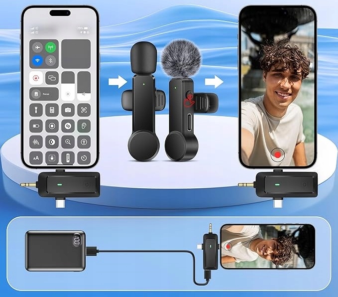 - 【сумісна з iPhone/Android/камерою】: Цей бездротовий набір мікрофонів Tie містить 2 мікрофони та універсальний 3 в 1. iPhone 15 та телефони з Android, камери та лопатки. Ідеально підходить для режисерів, влогерів, YouTubers, мобільних журналістів та творців контенту. 4 Розширена інтегрована схема ефективно виключає фоновий шум і розумно фіксує цільовий звук, забезпечуючи вашій плівці кращу якість голосу. Губка та накладки для волосся зменшують звук вітру та вибухівки. 4 Вони не потребують адаптера, Bluetooth або додатка. Просто підключіть приймач до пристрою, увімкніть портативний мікрофон, і обидва пристрої будуть автоматично парні. (Примітка: Якщо пара не вдається, не хвилюйтеся, просто вимкніть пристрій і повторіть спробу).