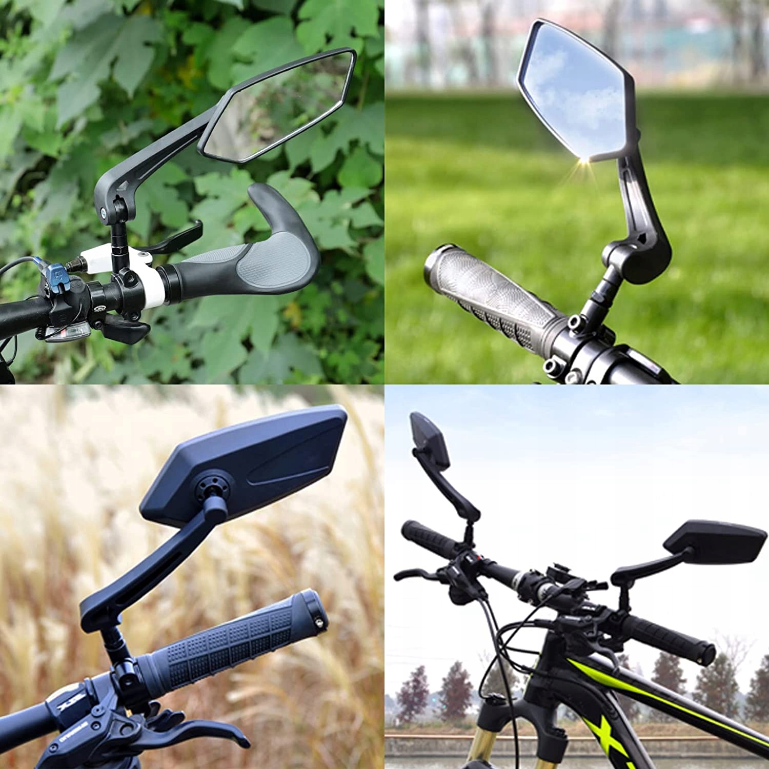 - Дзеркало заднього перегляду високої роздільної здатності робить зображення більш реалістичним, без спотворень і запаморочення, а більший дзеркало велосипеда дозволяє чітко спостерігати за зустрічними транспортними засобами на спині, тому подорож є більш безпечною і простішою. Вільно встановіть заднє дзеркало велосипеда під прямим кутом, щоб отримати краще поле зору, спостерігати за речами з різних напрямків, ефективно уникати аварій на доріг та покращити безпеку водія.