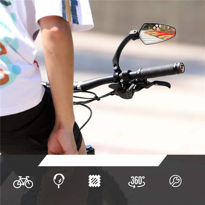🚲🚲 Регульовані кути: Наші велосипедне дзеркало оснащене регульованими кутами, тому ви можете легко відрегулювати положення дзеркала відповідно до своїх уподобань. Це забезпечує найкращу видимість і безпеку під час руху. Їх можна обертати на 360° під будь-яким кутом.