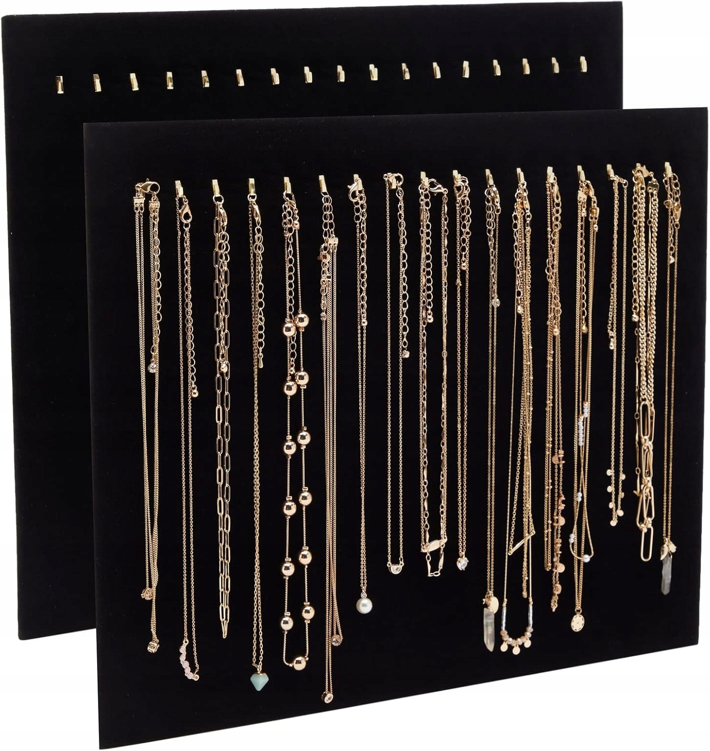 Набір із 2 елегантних ювелірних вітрин, призначених для естетичної та впорядкованої презентації сережок, кулонів, ланцюжків та інших підвісок. Кожна підставка має до 17 спеціально профільованих місць, які дозволяють легко та ефективно розвішувати ювелірні вироби.