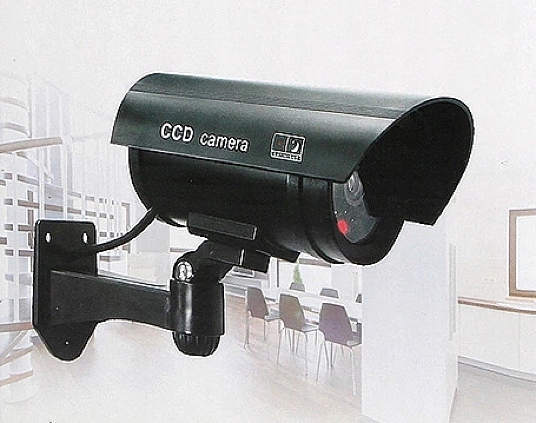 🔸 Пристрій з реалістичним виглядом камери спостереження з миготливим світлодіодом, що живиться від батарейок.