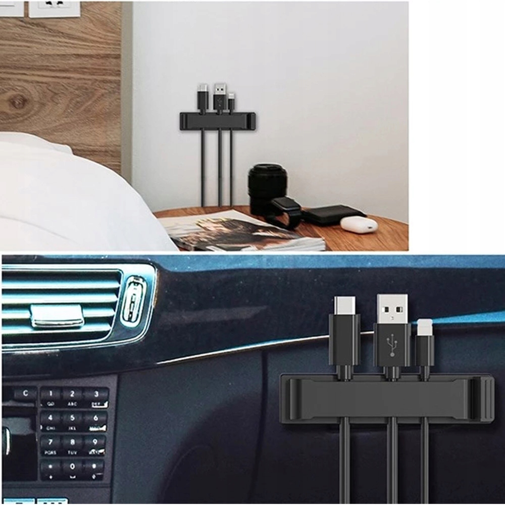 Кабельний органайзер - це непомітне, але дуже практичне рішення, яке вирішить проблему заплутаних кабелів. За допомогою міцної стрічки ви можете прикріпити його до більшості гладких і рівних поверхонь, наприклад, у машині, на столі чи біля телевізора. Тримач має тиснення, яке підходить для більшості кабелів, доступних на ринку. Виготовлений із міцного матеріалу, що забезпечує довговічність, легкість чищення та великі можливості. Органайзер прямокутної форми з розміром основи 51,5 х 20 мм і універсального чорного кольору. У наборі 2 органайзера.