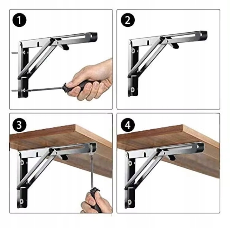 Складний кронштейн — це практичне рішення для підвішування полиць, стільниць або столів у різних кімнатах. Виготовлений з високоякісної сталі, він забезпечує надійність і довговічність. Завдяки варіанту розкладання користувач може легко заощадити місце в кімнаті. Монтаж простий і безпроблемний, а універсальний дизайн дозволяє кронштейну ідеально вписуватися в різні стилі інтер'єру. Це практичне рішення для людей, які шукають функціональні аксесуари для організації простору вдома чи в офісі.