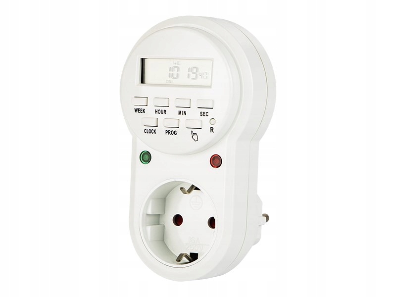 Розетка живлення з електронним таймером дозволяє запланувати ввімкнення та вимкнення живлення. Мінімальний заданий час - 1 хвилина, можливе 24-годинне і тижневе програмування.