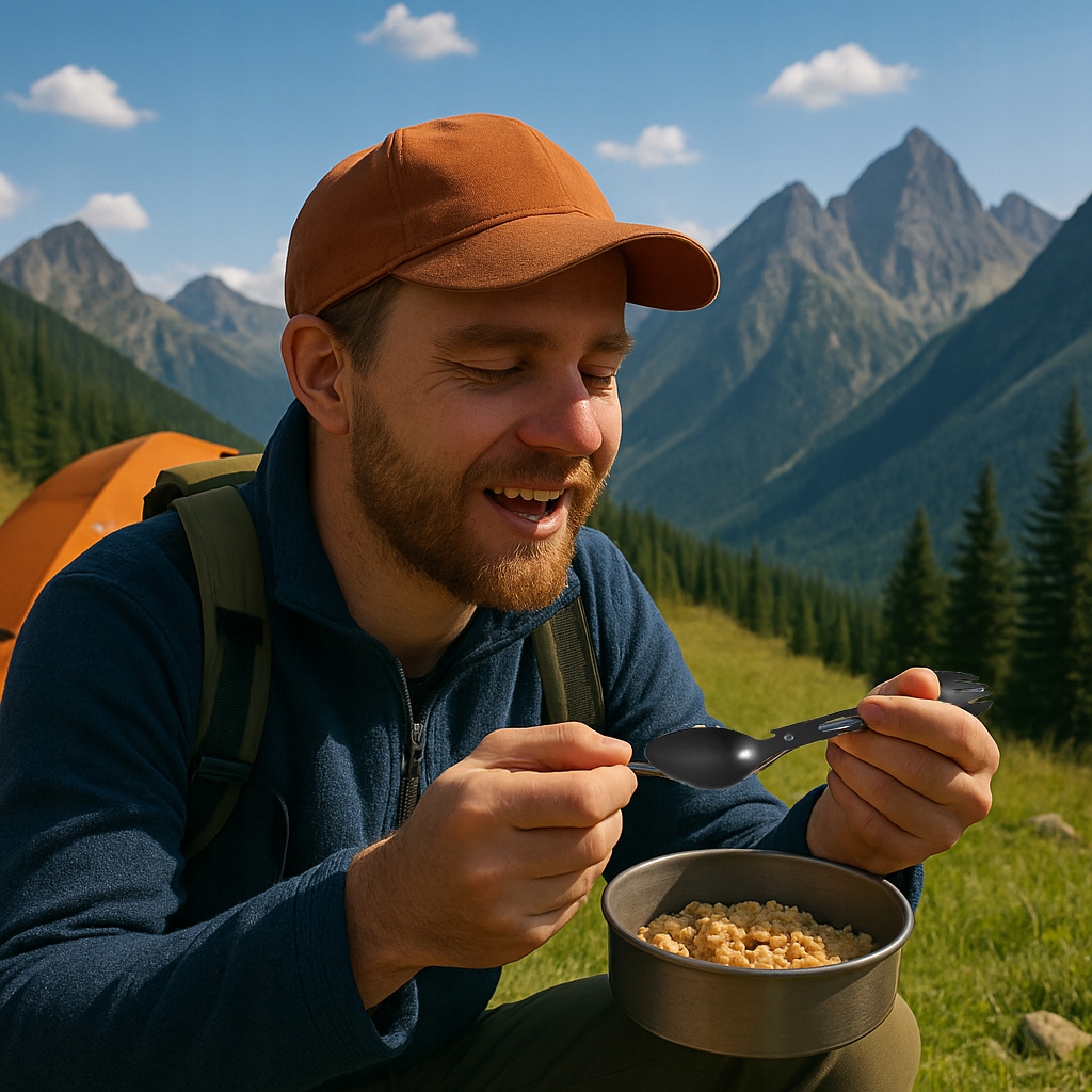 Ідіть на слід, не турбуючись про відсутність відповідного інструменту! Наш багатофункціональний туристичний Essential 8in1 - ідеальне рішення для кожного любителя на свіжому повітрі та багато іншого. Забудьте носити важкі та об'ємні столові прилади - цей компактний гаджет замінить їх усіх!