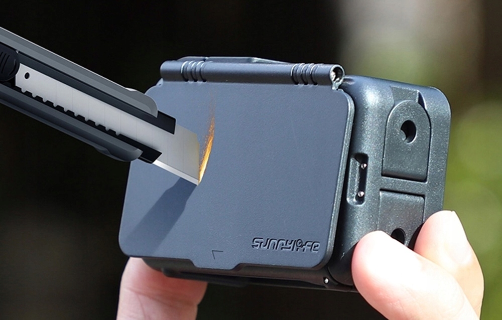Чохол Sunnylife OA5-BK941 оснащений складаним сонцезахисним козирком, який можна легко відкрити, щоб забезпечити оптимальний захист від сонячного світла. Навіс кріпиться на демпфований вал, що дозволяє розташовувати його під будь-яким кутом, забезпечуючи ефективне покриття незалежно від умов освітлення. Крім того, чохол стійкий до подряпин і ударів, захищаючи камеру від гострих предметів, що значно збільшує довговічність пристрою.