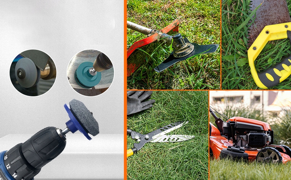 - ШИРОКЕ ЗАСТОСУВАННЯ: Широко використовується для заточування ножів для газонів, лез для бурів, газонокосарок, серпоподібних ножиць, фрез тощо.