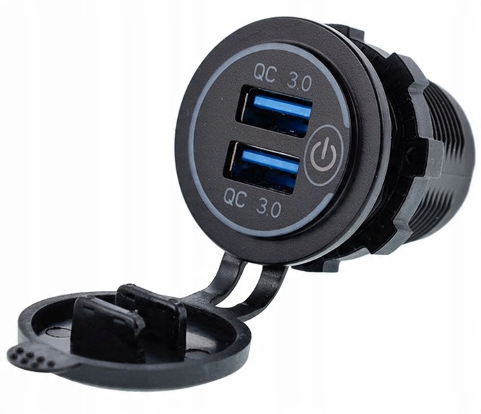 Заряджайте свій телефон, смартфон та інші пристрої швидше завдяки зарядці QC 3.0. Зарядний пристрій призначений як для автомобілів 12V, так і для 24V. Незамінний зарядний пристрій 2 в 1 для мотоцикла, легкового автомобіля, фургон, скутер, квадроцикл, катер. Джерело живлення розроблено для роботи в несприятливих погодних умовах - просто закрийте гумову кришку.