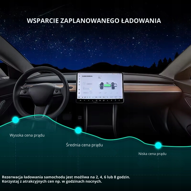 - Регулювання живлення: Чи є у вас фотоелектрична установка ? Ви можете відрегулювати потужність зарядки до поточного виробництва енергії, щоб максимально використовувати електроенергію з сонячних батарей, а не взяти її з мережі.