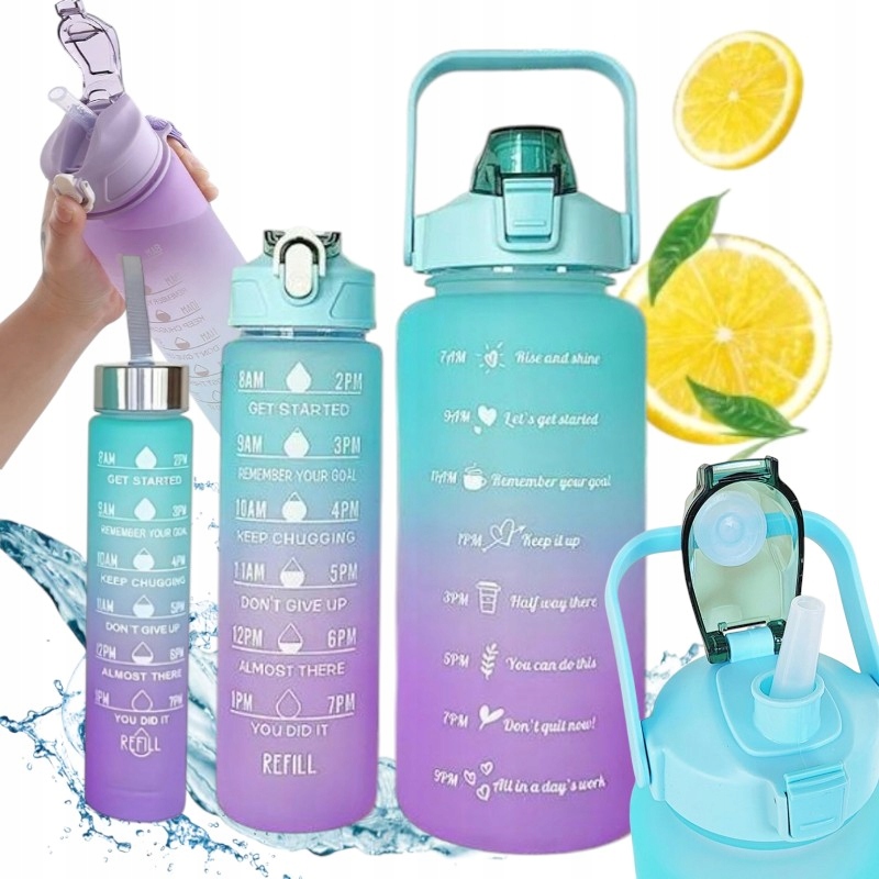 ✨bidon Motivation Пляшка з вимірювальною мірою 3 штук 2000 мл 900 мл 300 мл 3in1