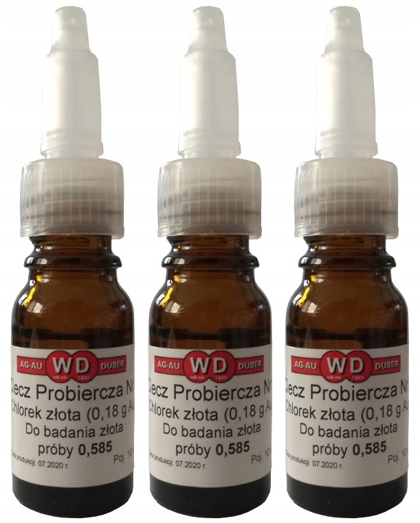 хлорид золота - це тестова рідина, призначена для визначення тесту на зупинку золота 0,500 - 0,600. діє в усіх тестових офісах. Для цього були використані чисті хімічні сполуки для аналізів (частина D.A.), були використані дистильовану воду та золоту спробу 0.9999. Зберігайте в щільній скляній пляшці крапелькою. Завдяки цьому, це не забруднене іншими металами, які могли б підробити золотий тест. Ми вибираємо тест на голку для очікуваного тесту тестового сплаву, і в паралелі ми виконуємо подряпину. Ми застосовуємо до отриманих слідів через невелику кількість тестової рідини, яку ми видаляємо надлишок (наприклад, папір) після належного часу. Отримавши той самий відтінок кольору, ми виявляємо, що перевірка зупинки має зразок шпиля.