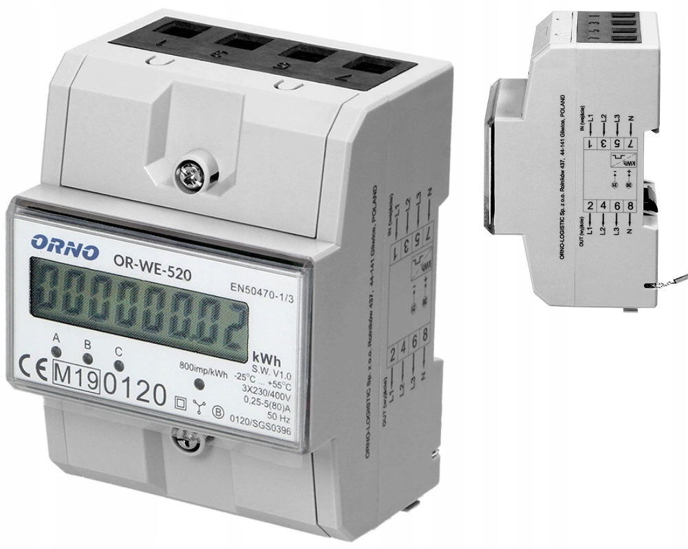 3-фазний лічильник струму 3-фазний 80А ORNO