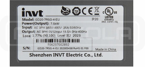 Інвертор GD20-7R5G-4-EU серії Goodrive20 використовується для регулювання частоти обертання індукційних 7,5 кВт. двигуни з трифазним джерелом живлення 400 В (380 В) і постійною (заводською) частотою обертання 750, 1000, 1500 або 3000 об/хв.