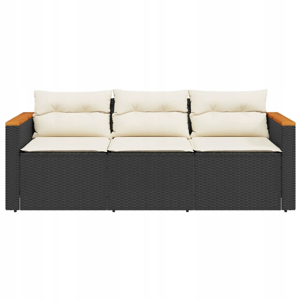 3-місний чорний садовий диван з подушками, розміри 177 x 65 x 66 см