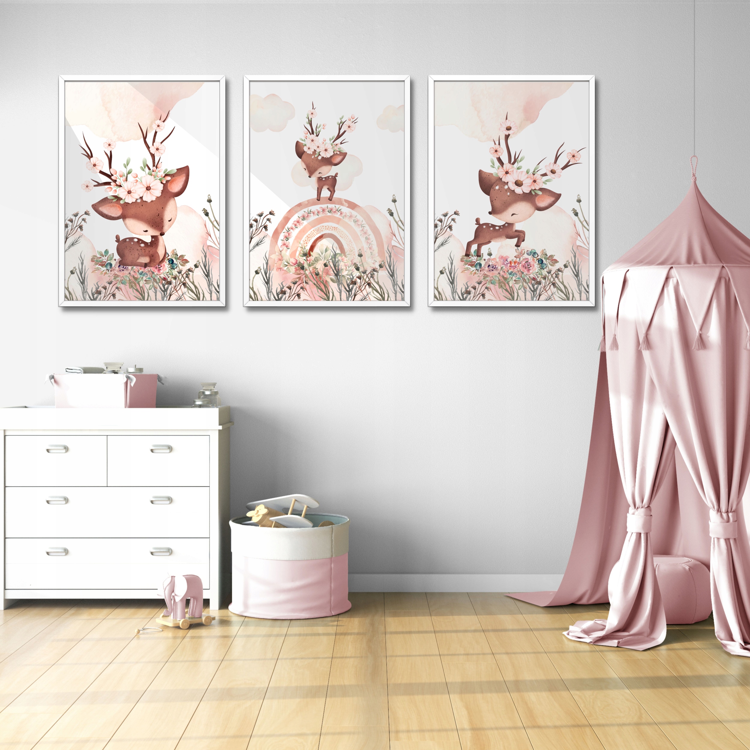 3 ПЛАКАТИ ДИТЯЧІ КАРТИНИ 30х40 ОЛЕНЬ ВЕСЕЛКА ЛІС