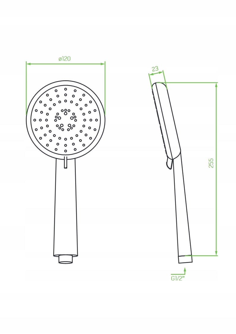 Кругла плоска палітра душової лійки дозволяє використовувати три потоки на вибір: масажний, змішаний і дощовий.