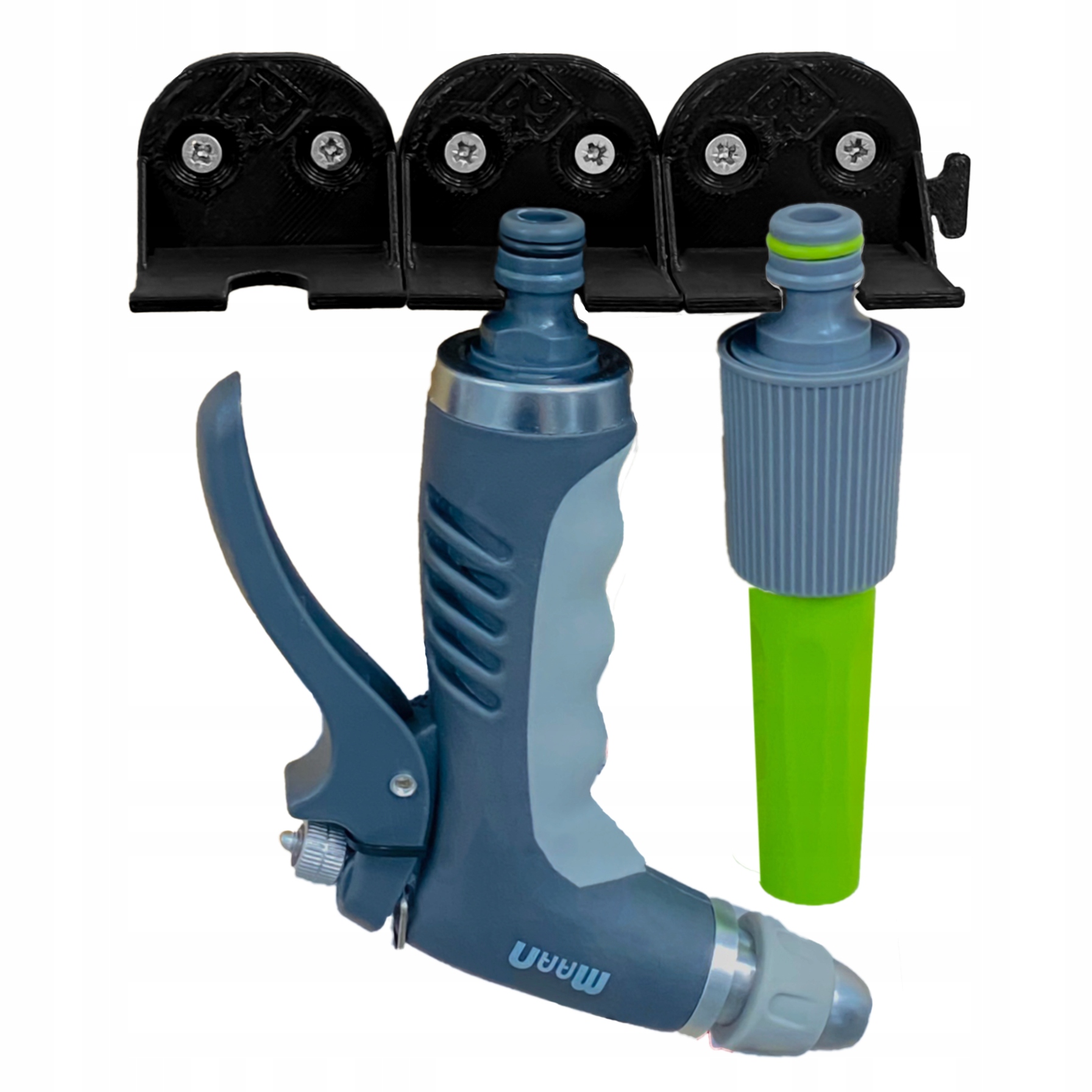 Цей модульний тримач насадки для садового шланга та аксесуари є ідеальним рішенням для всіх, хто хоче охайності у своєму саду чи майстерні. Набір складається з трьох незалежних ручок чорного кольору, які можна комбінувати відповідно до ваших потреб, створюючи персоналізовану систему для зберігання інструментів і аксесуарів.