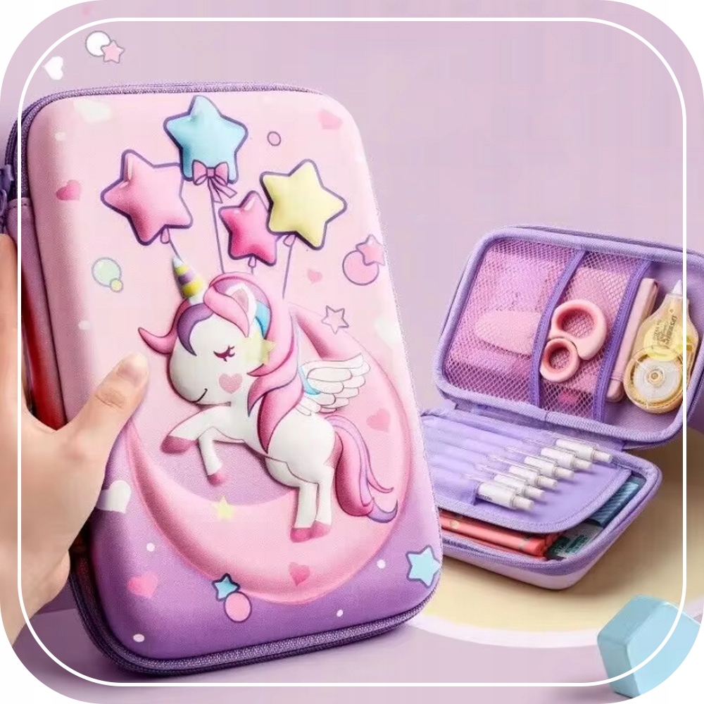 ШКІЛЬНИЙ пенал, жорсткий, розширюваний 3 в 1 ЄДИНОРІГ 3D ДЛЯ ДІВЧИНКИ