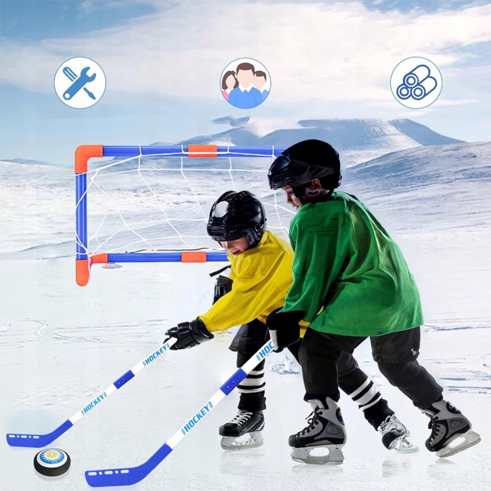 іграшка — це найкраща вбивця часу для дітей! Красива подарункова коробка входить у комплект: 2* хокейної ключки, 2* воріт, 2* хокею, 1* USB-кабель для зарядки, 1* надувний тубус, 1* надувний футбольний м’яч. Ідеальний подарунок на день народження, День захисту дітей, Різдво, День подяки, Великдень або літній табір.