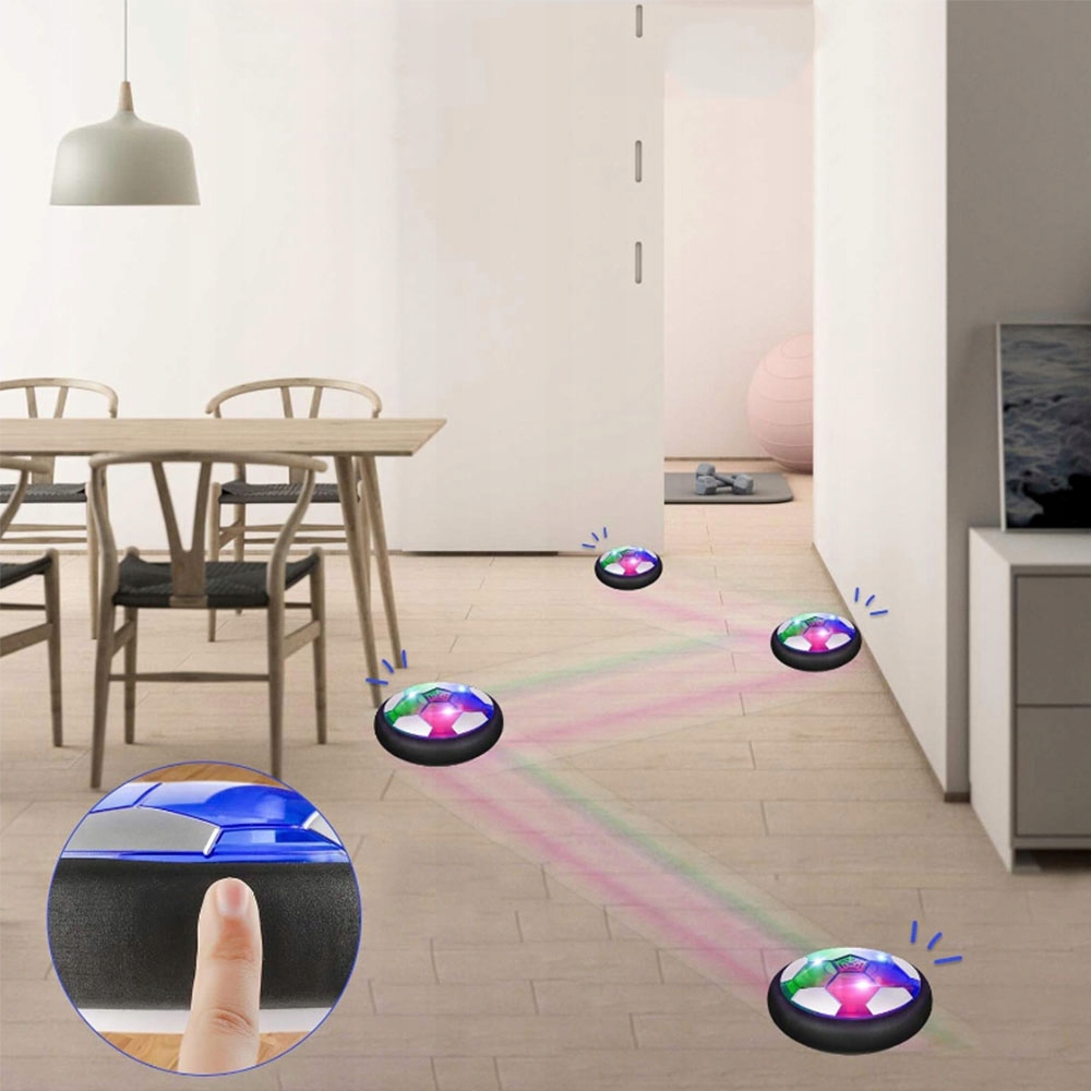 Завдяки пневматичній підвісці плаваючі м’ячі можуть легко ковзати по плоскій підлозі, включаючи підвали, дерев’яну підлогу, кахельну підлогу та килими з низьким ворсом. У будь-який дощовий або сонячний день вдома можна зіграти у футбол/хокей! Якщо ви хочете пограти у своєму трав’яному саду, вам підійде маленький надувний футбольний м’яч.