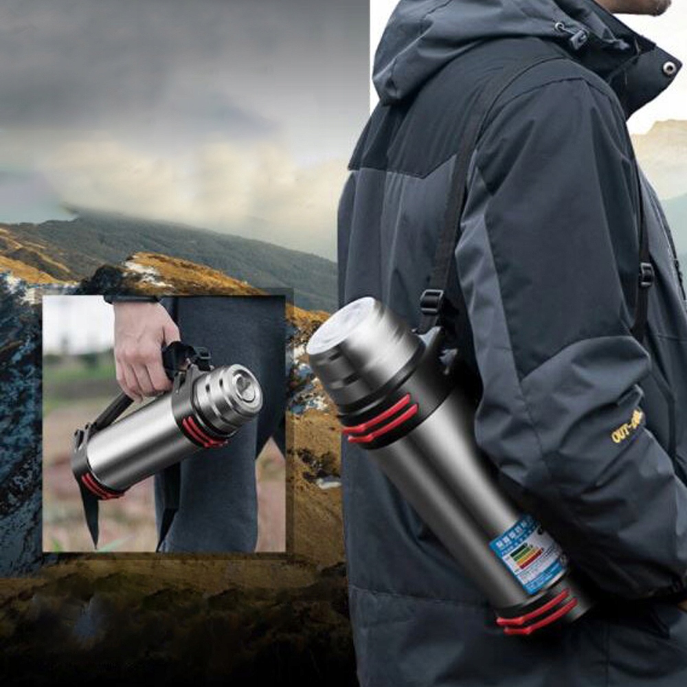 ☕- Практична та міцна ручка та прихований плечовий ремінь довжиною 110 см дозволяють носити пляшку в руці або на плечі, що дозволяє подвійно використання.