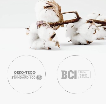 - Екологічність: маски виготовлені відповідно до стандарту Oeko-Tex Standard 100 і виготовлені зі 100% бавовни BCI (Better Cotton Initiative)