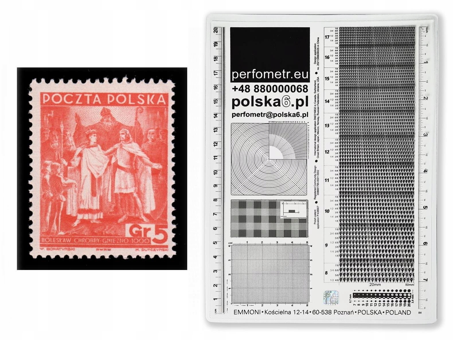 "Представлений тут PERFOMETER — це набір із 8 різних мірних чашок, створених переважно для потреб філателістів. Окремі мірні чашки характеризуються винятковою точністю та точність вимірювання досягає 0,05 мм. Це єдиний раніше невідомий набір мірних чашок, виготовлених таким чином. У нас є міри в сантиметрах і дюймах, у нас є точний транспортир, який дозволяє, наприклад, виміряти кути екрана Видання "Wodzów". Існує спеціальна мірна паличка для дослідження друкарських відбитків видання Краків. Модифікований зубний калібр дозволяє легко вимірювати перфорацію з точністю 1/8 замість попередніх вимірювань до 1/4. Це універсальний професійний пристрій, вдосконалений до найдрібніших деталей, був представлений EMMONI до патентних відомств у десятках країн на кількох континентах. Я вважаю, що кожен досвідчений колекціонер повинен використовувати цей пристрій."