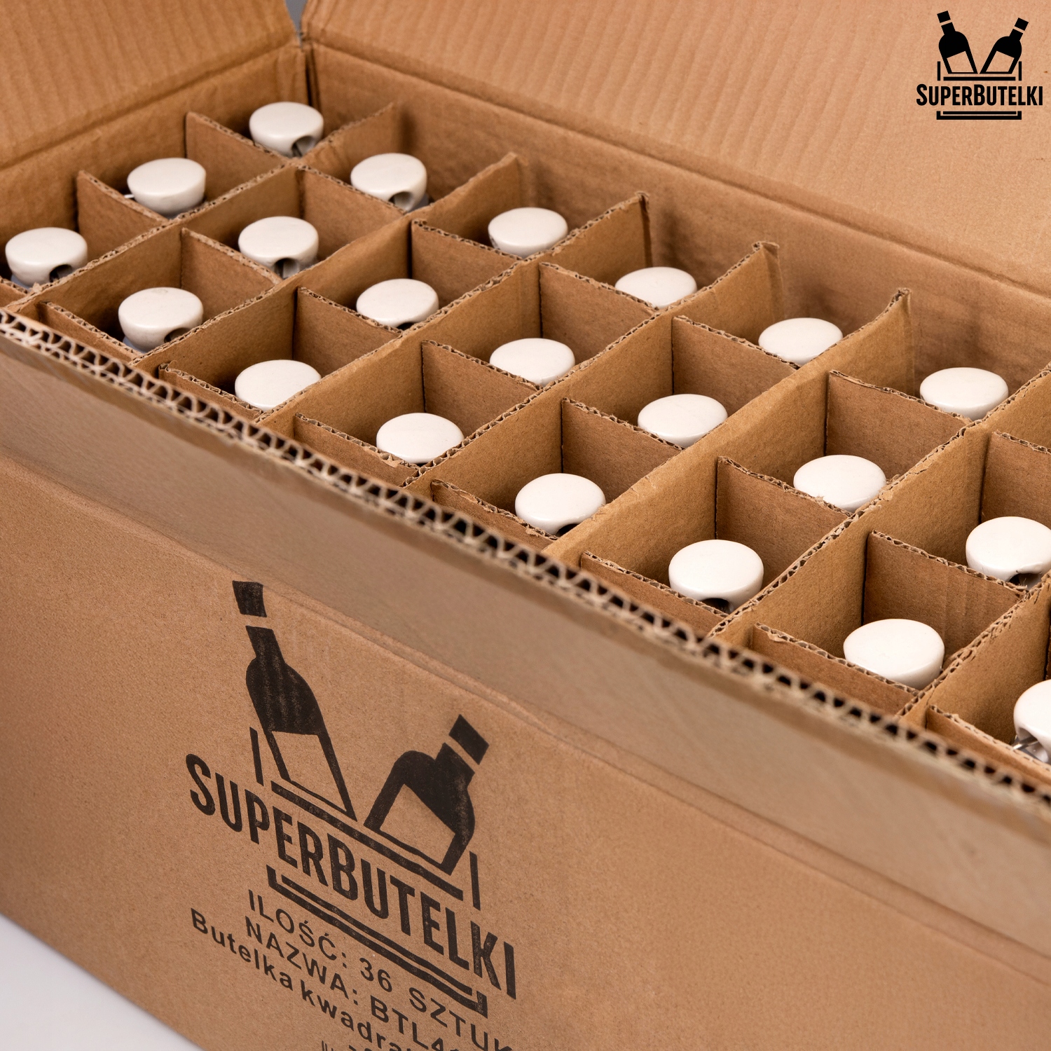 36x КВАДРАТНІ скляні пляшки 250 мл з механічною кришкою - картонні