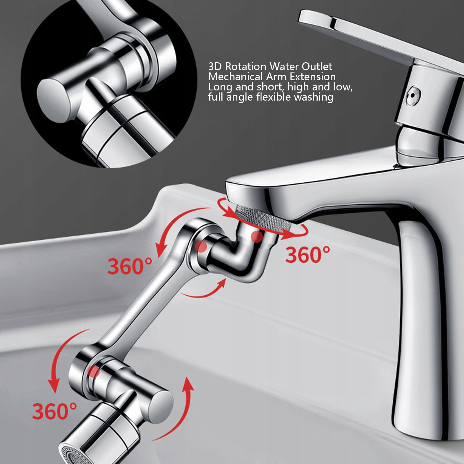 1. Поворотний подовжувач: підтримує обертання на 360° і механічну руку на 1080°, з 4 шарнірами, які дозволяють гнучко згинати або складати для доступу до будь-якого кута раковини; Насолоджуйтеся зручністю під час миття обличчя, волосся та зубів, особливо для дітей, людей похилого віку та довгого волосся