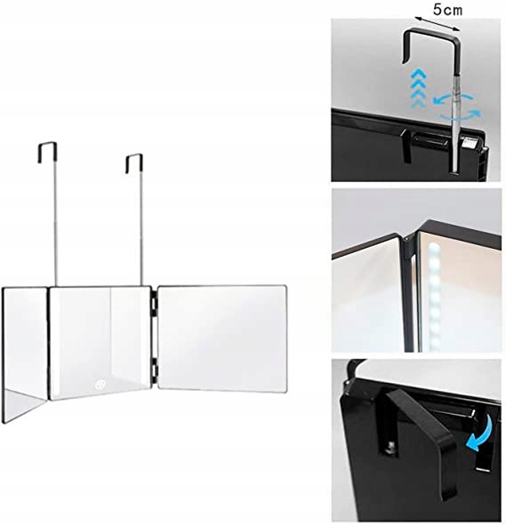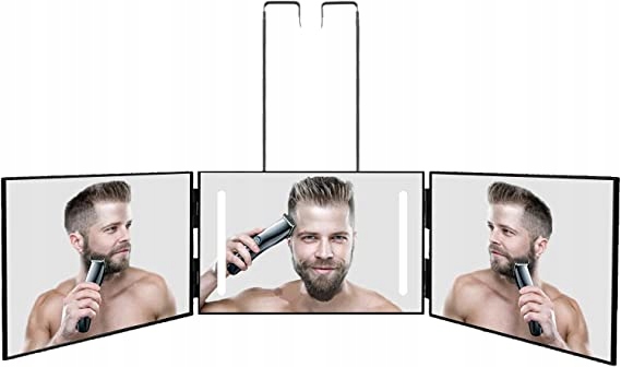 3-СТОРОННЕ ДЗЕРКАЛО НА 360° - Високоякісні зачіски завжди коштують дорого, але з нашими перукарськими дзеркалами ви можете заощадити гроші та час. Дзеркало, що складається з трьох сторін, дозволяє бачити всі кути вашої голови та обличчя, щоб створити власну зачіску. РЕГУЛЬОВАНА РУЧКА - перукарське дзеркало має алюмінієвий телескопічний кронштейн і дверний гачок, тому перукарське дзеркало можна легко повісити на двері, не потрібно пробивати отвори і легко впасти. Відрегулюйте висоту відповідно до ваших потреб для більш зручного кута огляду. Легко носити: дзеркало для макіяжу має портативну складану конструкцію, його можна брати куди завгодно, легко покласти в рюкзак або валізу, це високоякісне дзеркало для домашніх подорожей, унісекс. Розмір у складеному вигляді становить лише 32 х 19 см, що не займає багато місця для зберігання. Матеріал преміум-класу: Дзеркало виготовлено з високоякісного скла HD, яке забезпечує чітке та реалістичне відображення та створює ідеальні умови для стрижки. Корпус виготовлений з матеріалу ABS, який певною мірою витримує падіння та тиск. Характеристики продукту: потрійне складане дзеркало, вага нетто: 1500 г, розмір у складеному вигляді: 30,5*19,5*3 см, розмір у розкладеному вигляді: 92,8*19,8 см, розмір одного дзеркала: 30,4*19,8 см, довжина в розтягнутому стані: 0-52,5 см,