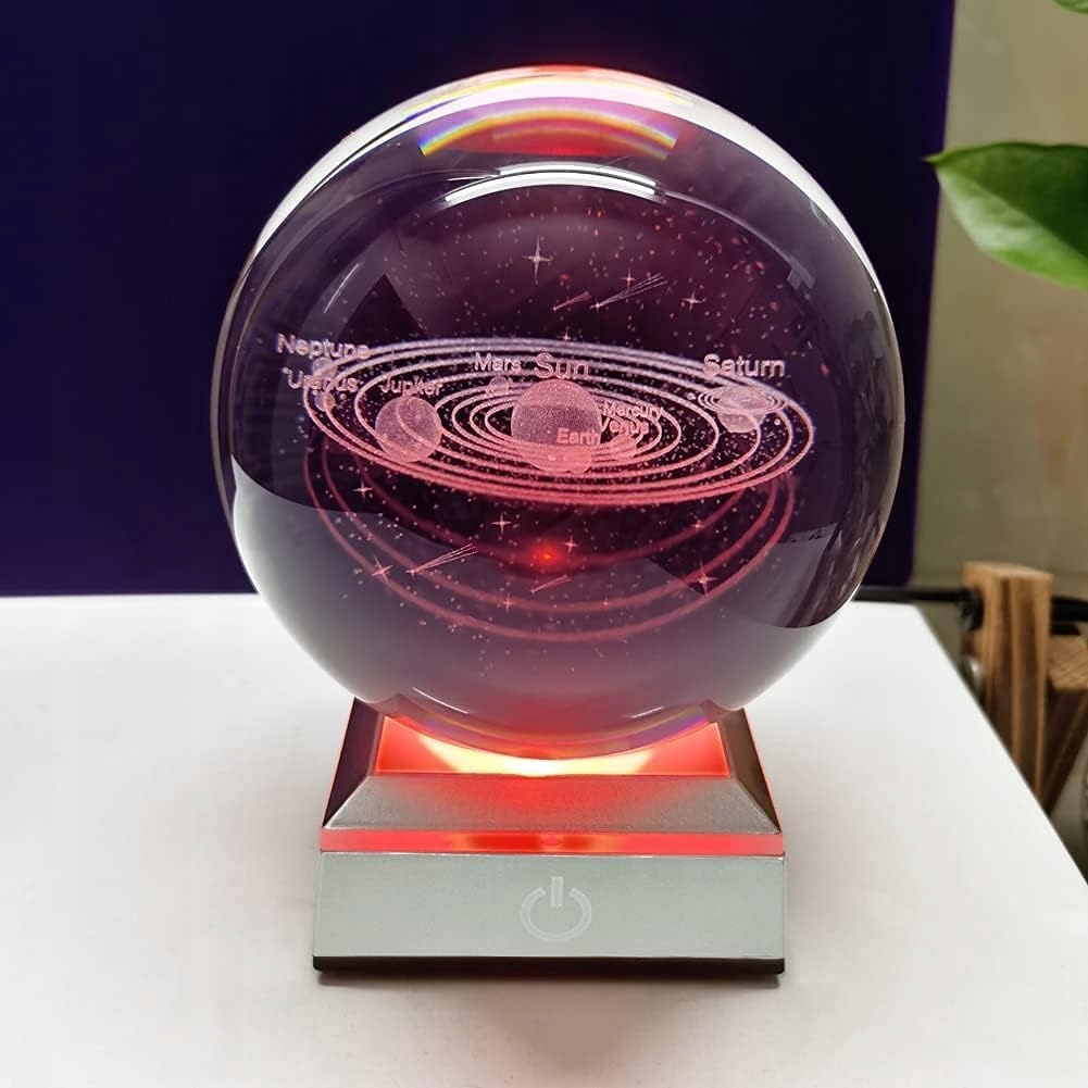 Кришталева куля 3D сонячної системи з 6 різними режимами освітлення Основа зі світлодіодним підсвічуванням для спальні, вітальні, офісу