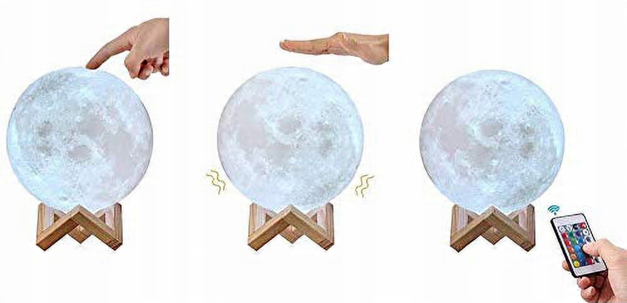 3D НІЧНИК Moon - це унікальний продукт, який поєднує в собі сучасний дизайн і функціональність. Завдяки вражаючому тривимірному підсвічуванню у формі місяця, він стане ідеальним доповненням до будь-якої дитячої кімнати. Завдяки використаній технології RGB світильник дозволяє вибирати з багатьох кольорів, що дозволяє пристосувати атмосферу до смаку та настрою користувача. Зручний пульт дозволяє легко регулювати яскравість і кольори освітлення, а також вмикати і вимикати лампу на відстані. Його елегантна форма та м'яке світло створюють затишну атмосферу, ідеальну для вечірнього читання або відпочинку перед сном. Світильник не тільки збагачує дизайн інтер'єру, але й стає надихаючим елементом творчості як для дорослих, так і для дітей.