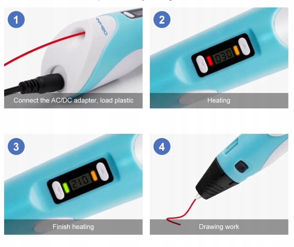 ✔️ Просто підключіть джерело живлення, виберіть тип нитки розжарювання та температуру, а потім через кілька хвилин ви можете почати створювати будь-які структури.
