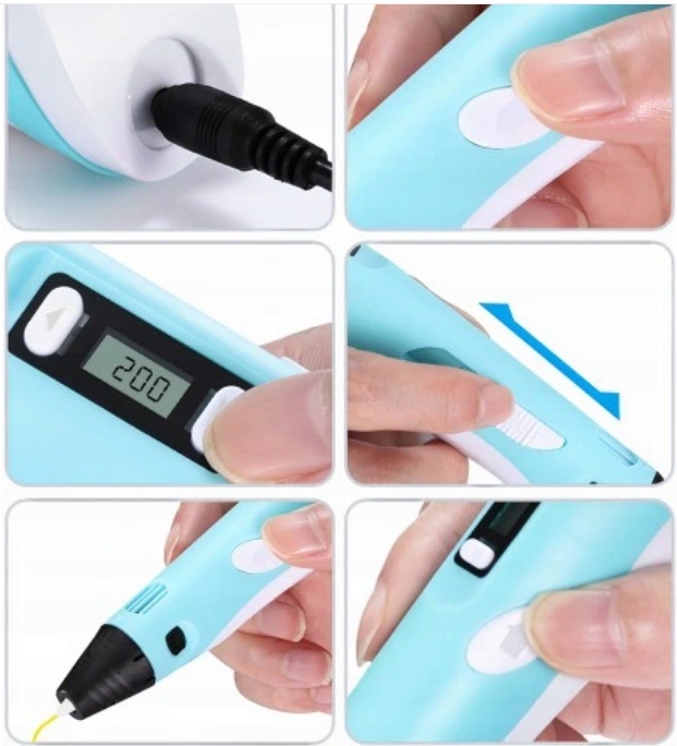 Важливим питанням є узгодження температури насадки 3D-ручки з типом матеріалу, який використовується для роботи. Це стане можливим завдяки РК-дисплею, де ви повинні прийняти вибраний матеріал, а потім встановити необхідну температуру.