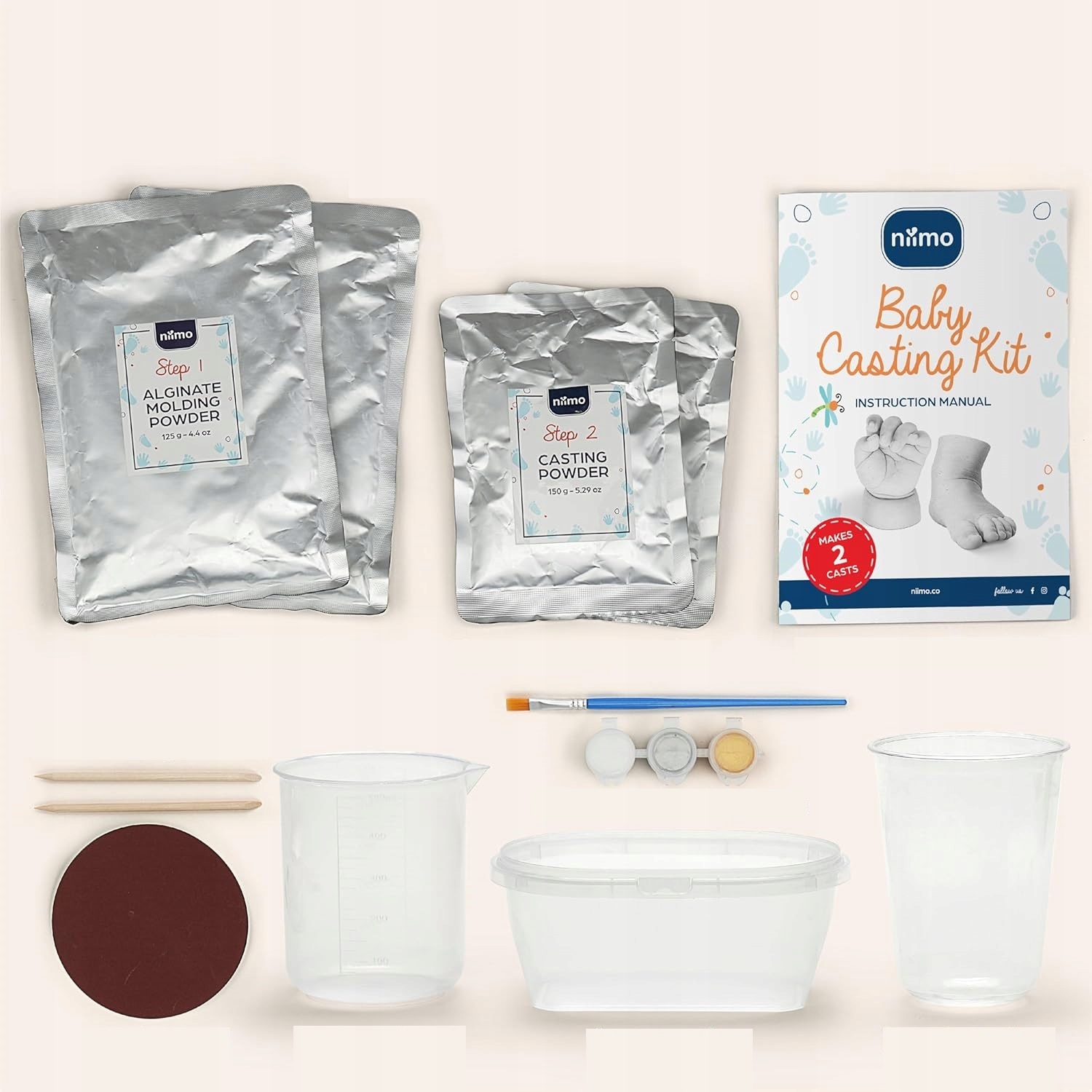 - Веселий і простий у використанні - Створіть форму, змішавши альгінат з водою, і занурте руку чи ніжку вашої дитини лише на 1-2 хвилини. Змішайте ливарний порошок з водою, додайте його у форму та дайте висохнути. Обережно вийміть зліпок із форми та персоналізуйте набір для лиття ніг і рук на свій смак.
